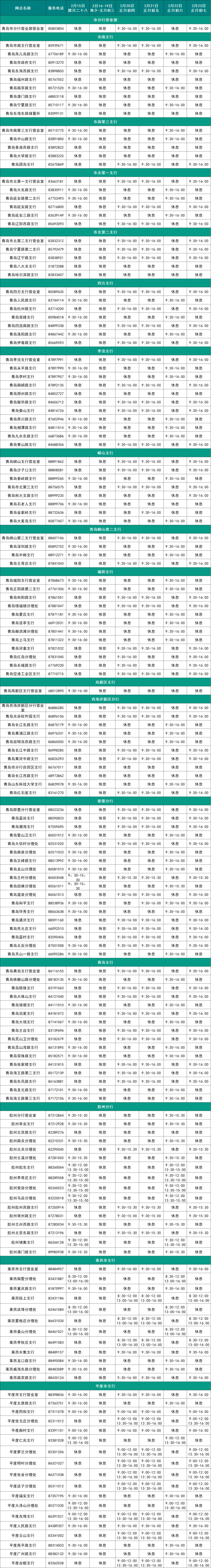 2月15日(腊月二十八)、2月20日-2月23日(正月初四-正月初七)网点仅受理个人业务,具体安排参照下表。