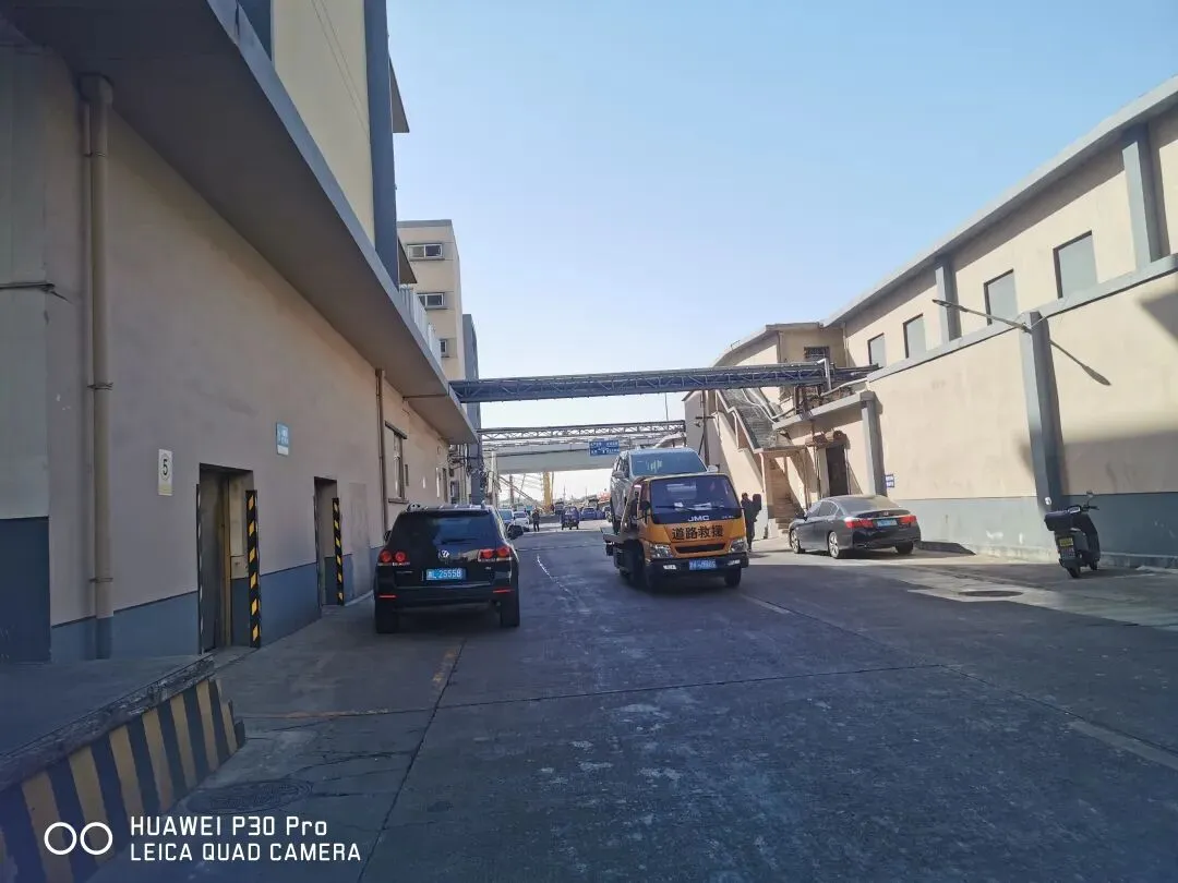 我径直往里走,无人拦阻,很快转入内部通道。两侧是米黄外墙、蓝灰墙裙的厂房,朴素实用,带着渔业加工区特有的气息。头顶多条金属管道与桥架交错延伸,尽显工业厂区的风貌。远处可见高大的起重设备,提示码头已然不远。