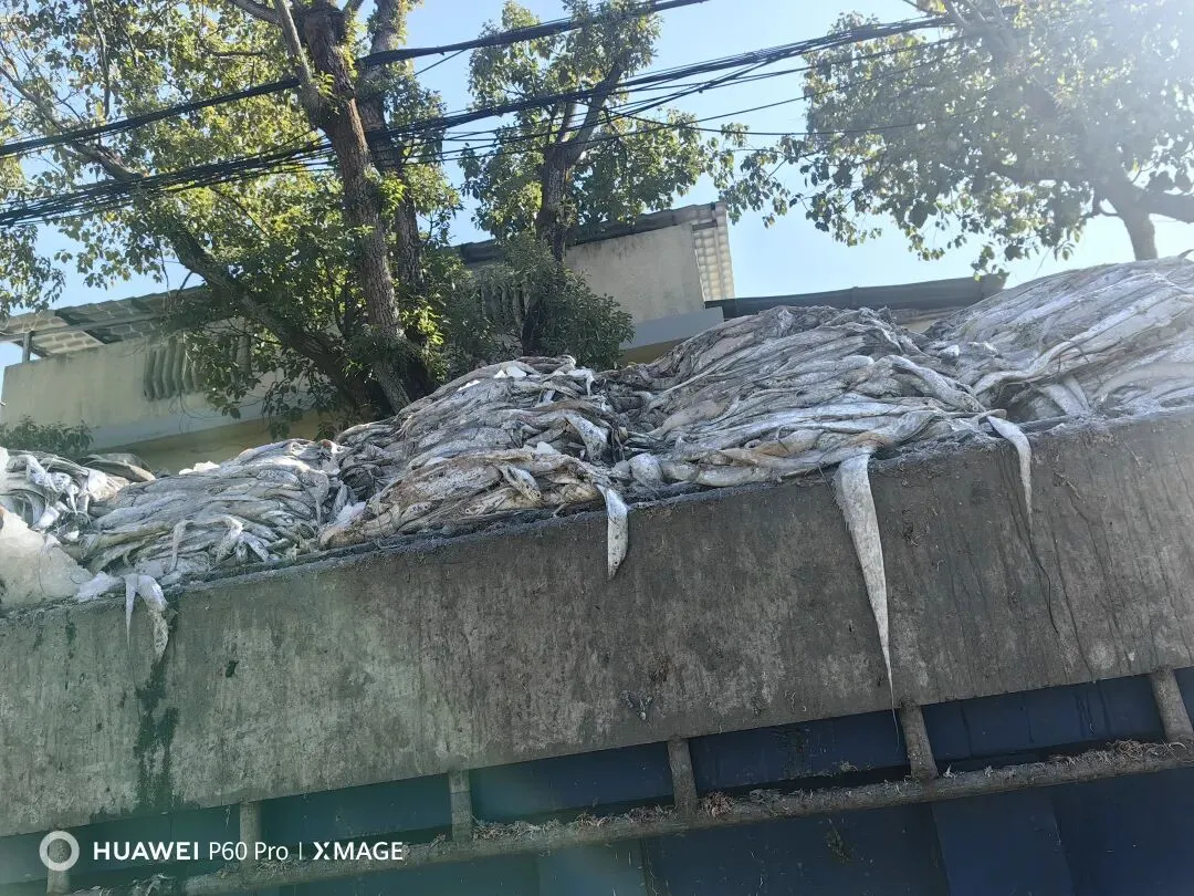 公司里车辆进出频繁,小轿车、运鱼小货车、大货车络绎不绝。时值带鱼上市季节,多数货车满载银白色的冷冻带鱼。我的目光落在一辆车上:车厢内带鱼层层叠叠,因冰冻而僵直,有的鱼尾垂落平台边缘,数量惊人。车厢边缘水渍斑驳,甚至泛起绿霉,显是常年运鱼的老车。望着这满车带鱼,我竟生出“偷”一些带回上海的念头😅😅😅。