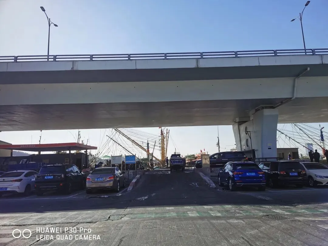 再往前,一座宽阔的现代公路高架桥横亘眼前,浅灰桥身、粗壮桥墩凌空跨越,将桥下空间纳入渔港的版图。