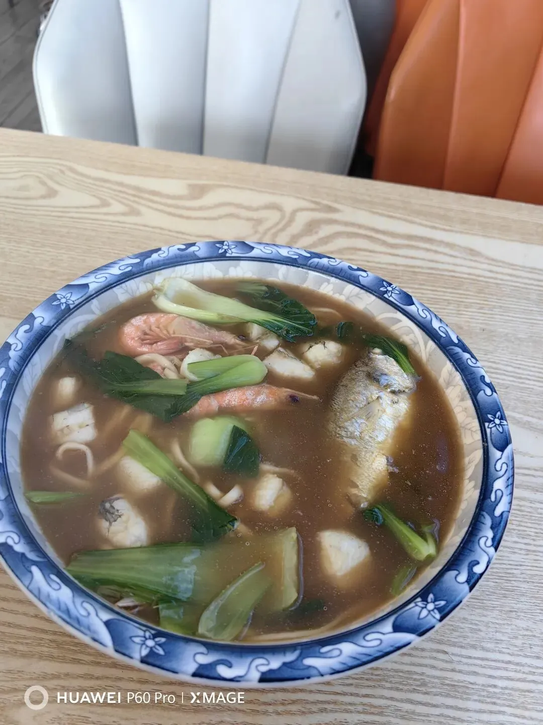 中饭时分,我在公司门口找了家海鲜面馆,要了碗海鲜面,三十八元,便宜又鲜美——这在上海是吃不到的。