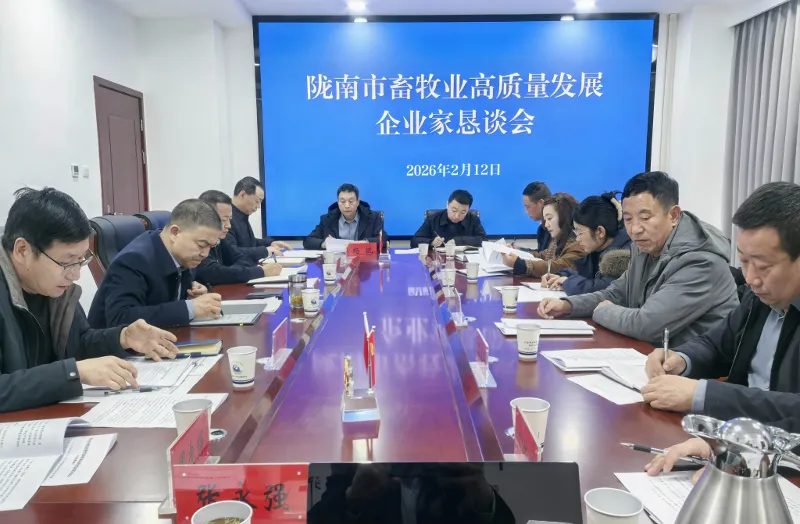 春回大地,万象更新。2月12日,马年春节即将来临之际,陇南市农业农村局以“开局即决战、起步即冲刺”的奋进姿态,聚焦产业发展与助企纾困重点领域,组织召开陇南市畜牧业高质量发展企业家恳谈会。3位畜禽养殖行业协会负责人和9位企业家代表与市农业农村局、市畜牧兽医总站负责人等齐聚一堂,共叙情谊、共谋发展,为推动全市畜牧业提质增效、转型升级、实现一季度开门红汇聚发展动能。市委农办主任、市农业农村局党组书记、局长邱晓旭主持会议,市畜牧兽医总站负责人等参加。会上介绍了2025年全市畜牧业发展情况,对《陇南市推进现代畜牧业高质量发展奖补办法》《陇南市2026年畜牧渔业群链式发展工作要点》征求意见稿作了解读说明,并征求了企业家意见建议。