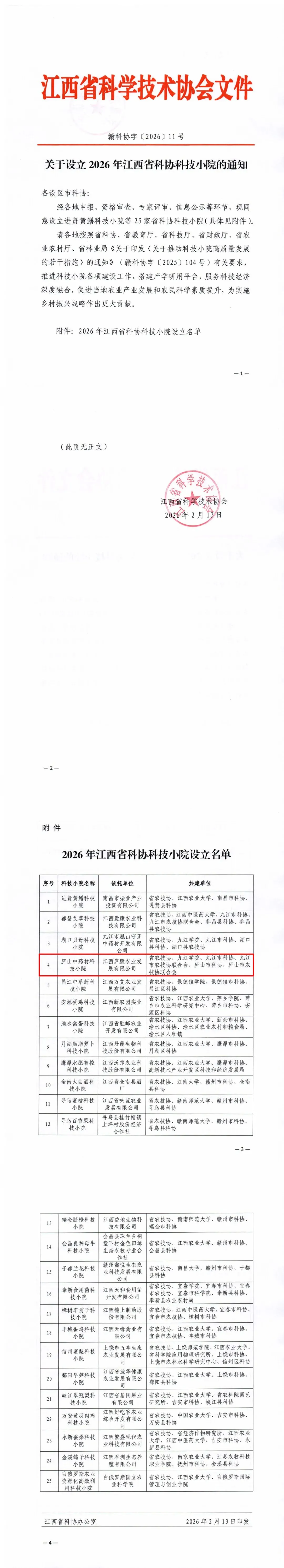 热烈祝贺!江西庐康农业发展有限公司(庐康中药谷)被江西省科学技术协会评为“2026年江西省科协科技小院”。