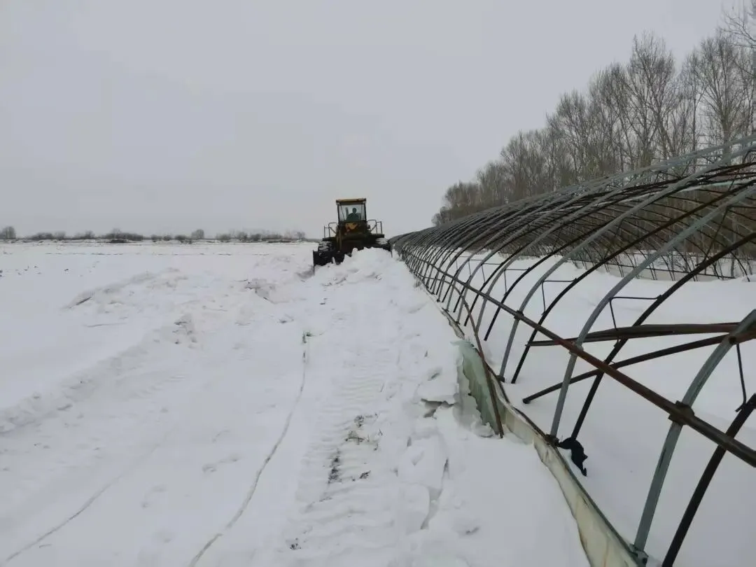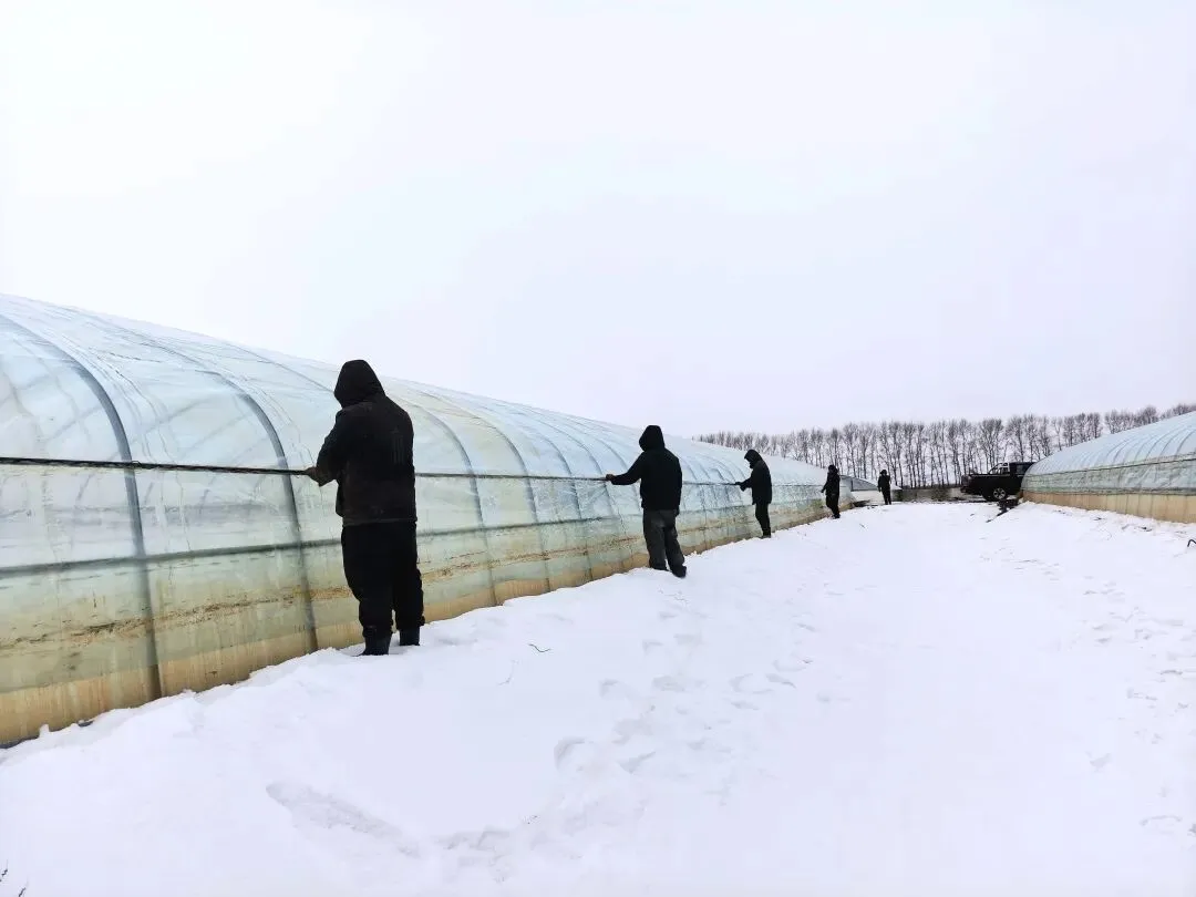 扣棚工作中,种植户严格执行“清一栋、扣一栋、保一栋”的标准,确保清雪扣棚无缝衔接,有效避免重复劳动,提高作业效率,节约生产成本。“最近天气好,正是抢进度的好时机。早一天把棚扣好压实,心里就早一天踏实,就算后续再下雪也不用慌了。”八五四农场种植户曲艳军边劳作边说。