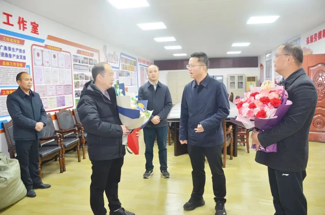 灵蛇辞旧岁,骏马启新程。2月13日上午,河池市委常委、秘书长、办公室主任张联松深入环江毛南族自治县农业农村局,走访慰问全国劳动模范、全国先进工作者、桑蚕产业带头人全诚,畜牧兽医高级技术人才、高级畜牧师韦必群,向他们致以新春祝福和诚挚问候,感谢他们扎根“三农”一线、为环江农业农村发展作出的突出贡献,并勉励继续发挥示范引领作用,以科技赋能乡村振兴,为河池农业高质量发展注入新动能。走访中,张联松与两位优秀人才亲切交流,认真听取他们在农业科技攻关、技术推广、产业发展等方面的实践体会与建议,深入了解桑蚕、畜牧等特色产业最新发展态势。他指出,当前正处在全面推进农业农村现代化、加快乡村振兴的关键阶段,科技是关键支撑,人才是第一资源。环江作为特色农业大县,桑蚕、香牛等产业已成为群众增收致富的重要支柱,要深入学习贯彻2026年中央一号文件和全区农村工作会议精神,紧扣党委政府中心工作,突出科技引领、人才支撑,真正让农业人才干事有舞台、发展有空间。张联松对两位人才提出三点期望:一是深耕专业,攻坚核心技术,推广适用技术,突破产业瓶颈,推动特色农业提质增效;二是薪火相传,通过科技志愿服务与农技科普,手把手传授实用技能,带动更多青年扎根基层、服务“三农”;三是精准对接产业需求,深化产学研融合,紧扣“十五五”规划,推广生态种养新模式,加快农业绿色转型,切实把科技成果转化为增产增收实效。两位人才衷心感谢市委、自治县委及各级部门的关心厚爱,表示将牢记嘱托、勇担使命,立足岗位、潜心钻研,持续推广先进技术、带动群众增收,以实际行动践行初心使命,为环江乃至河池农业农村高质量发展、乡村全面振兴贡献更多智慧和力量。