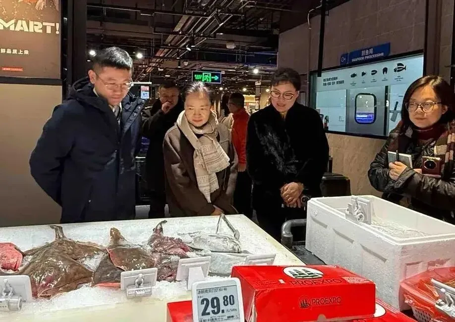 许丽娜首先向马司长介绍了物美AI新质零售旗舰店调改升级后的显著变化,重点阐述卖场商品品类的全面变革。食品安全作为此次节前视察的重点,马司长先后到果切区、生鲜区、食品安全监测室等区域,检查商品质量与安全管控流程。