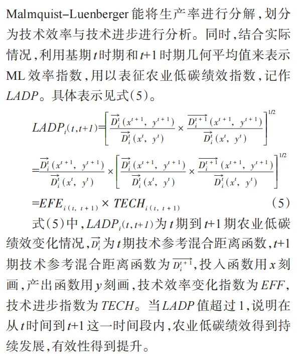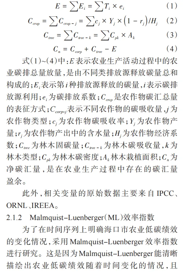 随着全球经济高速增长及工业化水平提高,温室气体排放量呈逐年递增的态势。在此背景下,以CO₂为主的温室气体排放已成为社会关注的焦点。为实现“双碳”目标,要坚持系统观念,统筹谋划,在降碳的同时,确保能源安全、产业链供应链安全、粮食安全。作为我国第一产业,农业的生产方式及结构对CO₂排放量具有重要影响。具体而言,农业活动不仅有可能增加温室气体排放,还有可能导致温室气体“消除”。例如,将荒地开发为耕地后,土壤吸收和储存碳的能力会显著提升,形成碳汇。因此,在加速实现“双碳”目标过程中,评价农业低碳排放绩效具有重要的现实意义。