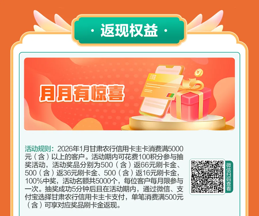 农行哇宝年货节 · 甘肃分行丨信用卡优惠集锦 ,多重优惠等您领【WOW福利】
