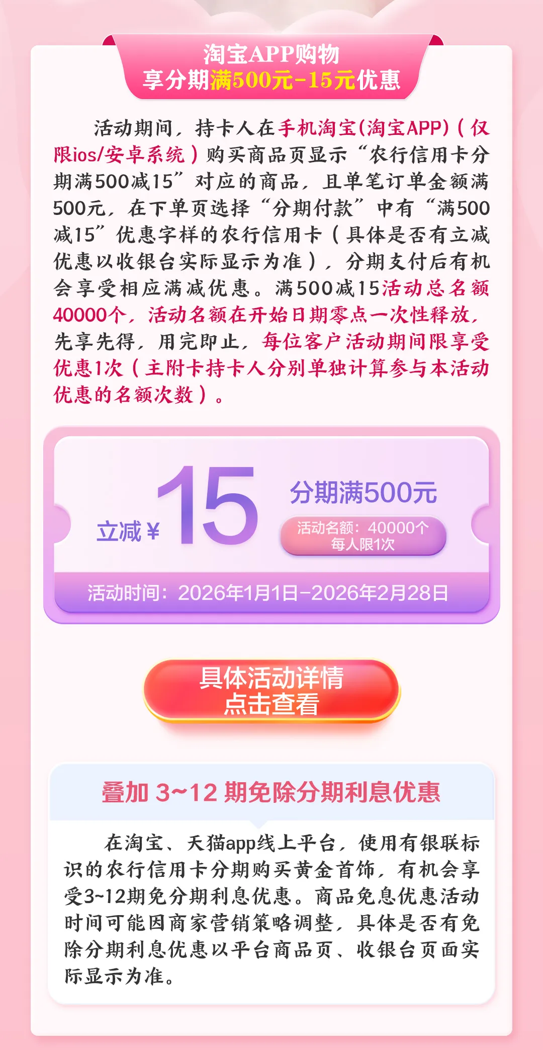 >农行哇宝年货节 · 淘宝分期购黄金首饰享满减优惠叠加3-12期免息!【WOW好物】