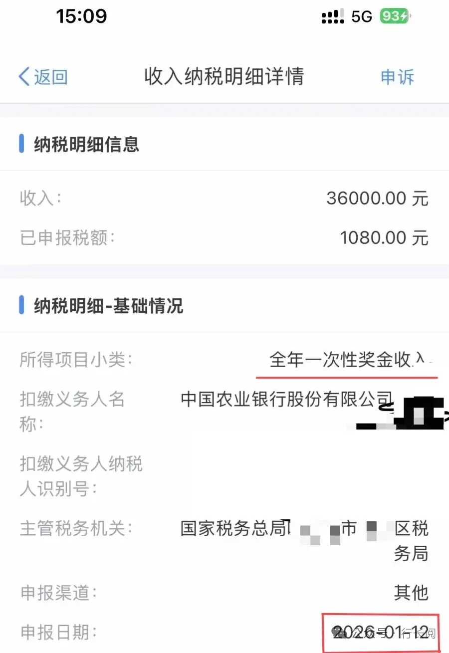 农行东北某员工晒出2025年终奖:一次性奖金36000元,在朋友圈直接炸出一片羡慕。