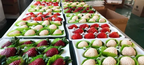 草莓界的 “劳斯莱斯”!从日本引进的珍稀品种,完全成熟后甜度高达 20%+。果肉硬脆带糯性,吃完满嘴留香超持久。更绝的是,它凭借超高 “身价” 和独特口感,直接火成网红顶流!