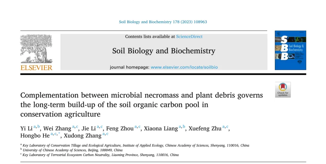 根据不同的微生物和植物来源生物标志物的指示,基于12年的保护性耕作实验,探索了微生物尸体和植物木质素在介导长期SOC积累中的不同作用。玉米秸秆的添加有利于微生物的增殖和SOC的封存,但经过十年的非线性增加,微生物的死质量接近“微生物承载能力”。相比之下,玉米残茬归还率较高时SOC积累的饱和延迟主要归因于顽固木质素样植物残体的选择性保留,导致微生物死亡质量对扩大的SOC库容量的贡献被稀释。因此,保护性耕作下可持续SOC库的建立受到微生物和植物来源成分功能分化的严格控制。玉米秸秆覆盖可能提高了微生物死亡质量对SOC稳定的贡献,而植物木质素的增加,伴随着氧化的减少,从长远来看,主要与SOC对微生物代谢的可分解性提高有关。