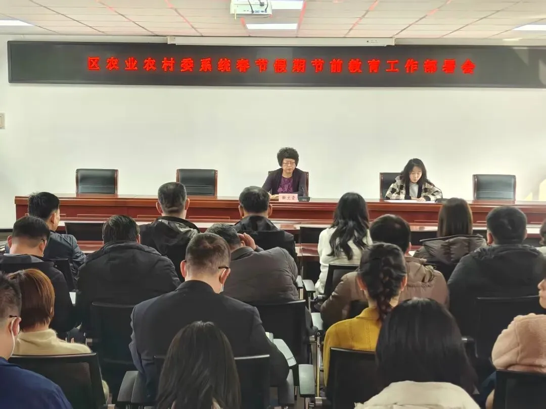 春节将至,为深入落实中央纪委、市纪委及北辰区纪委2026年元旦春节期间正风肃纪工作要求,持续深化纠治“四风”,严格执行中央八项规定精神,统筹抓好节日期间廉洁自律与机关安全各项工作,确保全委干部职工安全、廉洁、文明过节,北辰区农业农村委组织开展2026年春节假期节前教育工作部署会,会议由区农业农村委党委委员副主任靳文霞主持,全委全体干部职工参会。