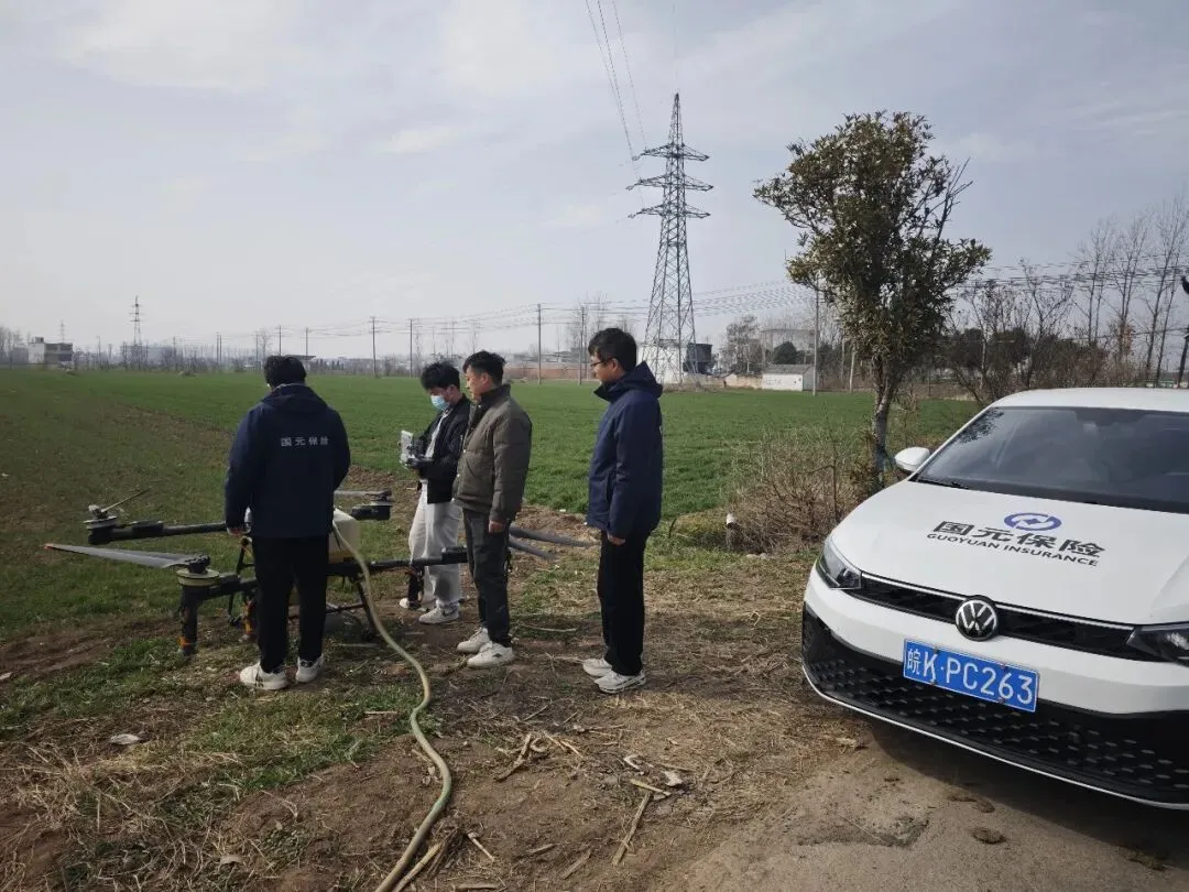 在界首市光武镇大户王存粮的小麦种植区,农险人员在田埂查看苗情墒情,实地指导种植大户规范开展统防统治,让大户懂防灾、会减损。王存粮说道:“以前只知道受灾了保险公司来赔,现在国元保险工作人员主动前来教我们打药、预防病虫害,灾前就把风险挡住,小麦长得稳,我们心里更踏实!”