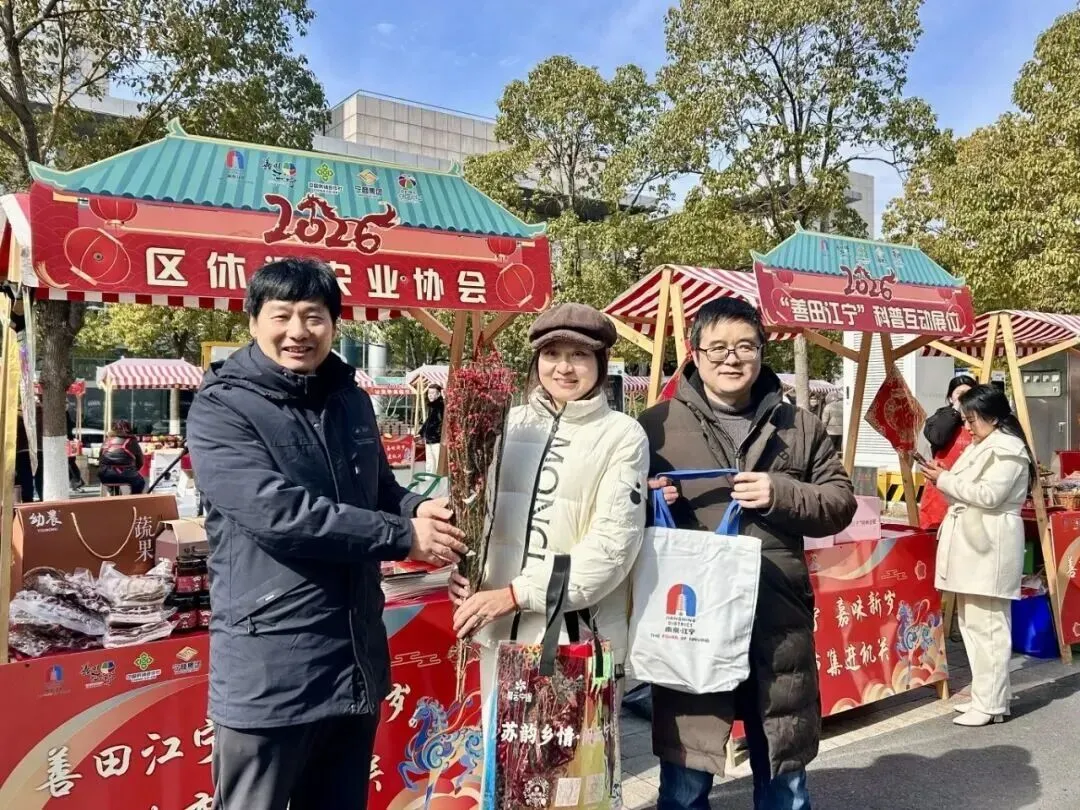 近日,2026“善田江宁,嘉味新岁——惠农市集进机关”活动顺利举办,活动以新春为契机、以惠农为核心,搭建起本土农产品产销对接的便捷桥梁。南京市江宁区休闲农业协会积极发挥牵头作用,精心组织多家优质会员单位参展,活动现场还特别设置扫江宁村品汇小程序赠送新年福袋环节,在传递新春祝福的同时,广泛宣传江宁村品汇招商平台,让更多人了解江宁农业招商资源,以消费助农、平台赋能的双重举措,为乡村振兴注入新春活力。