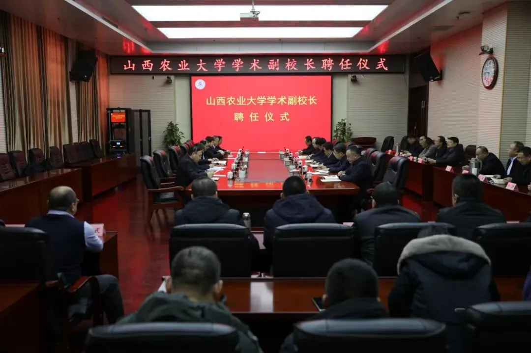 仪式上,张强为贾汉忠颁发山西农业大学(山西省农科院)学术副校长聘书。仪式结束后,全体校领导班子成员与贾汉忠同志合影留念。
