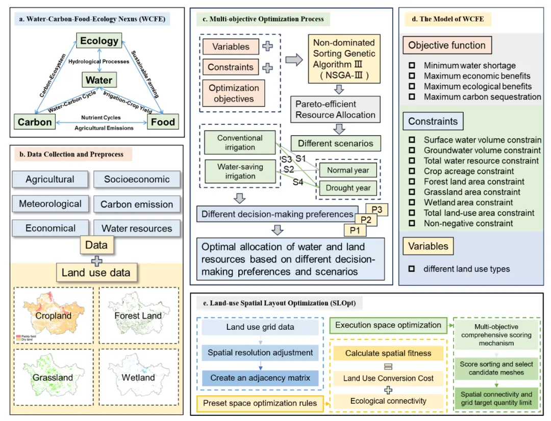 水资源与土地资源是农业生产和生态系统维持的关键基础要素,其配置方式直接关系到粮食安全、生态稳定与区域可持续发展。在气候变化与人类活动双重作用下,水资源时空分布不均、农业用水效率偏低及土地利用结构不合理等问题日益突出,水–粮–生态之间的矛盾不断加剧。尤其在典型农业集中区,如何在有限水资源条件下统筹保障粮食生产、提升碳汇能力并兼顾生态保护,已成为制约区域高质量发展的核心科学问题。