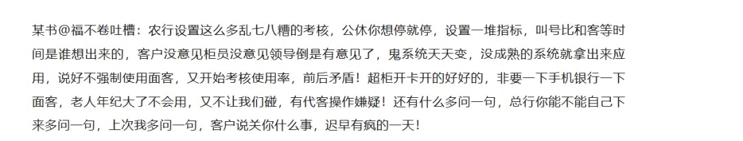 不是万不得已我不想进银行营业厅办事,一笔简单的业务操作环节太多,耗时太长。业务员也经常不能按时下班。额度小的业务没必要设置那么多繁杂的操作环节。其实防案件风险重点不在柜台小额交易,风险防范重点应该防决策层。我是银行退休老职工。