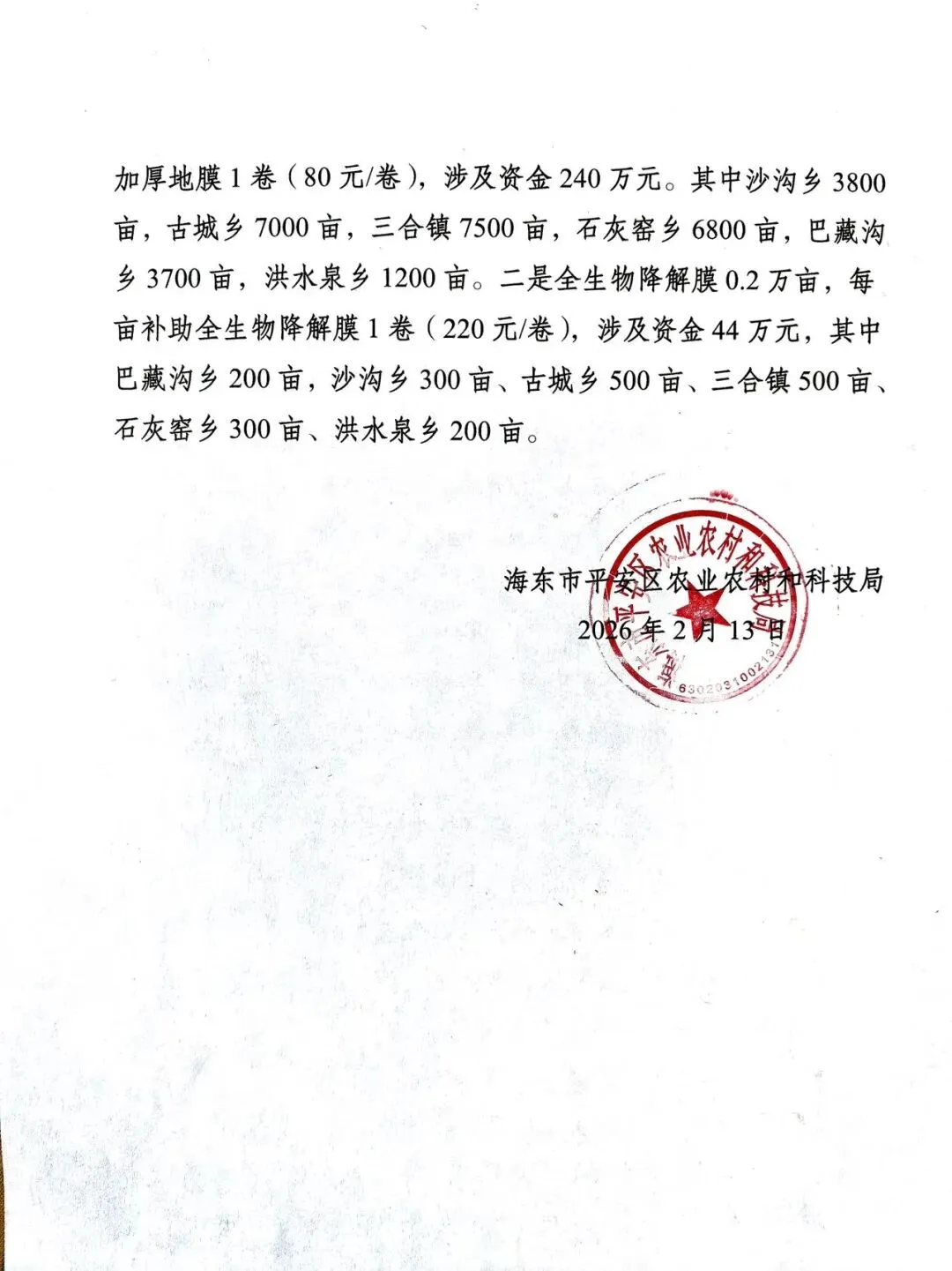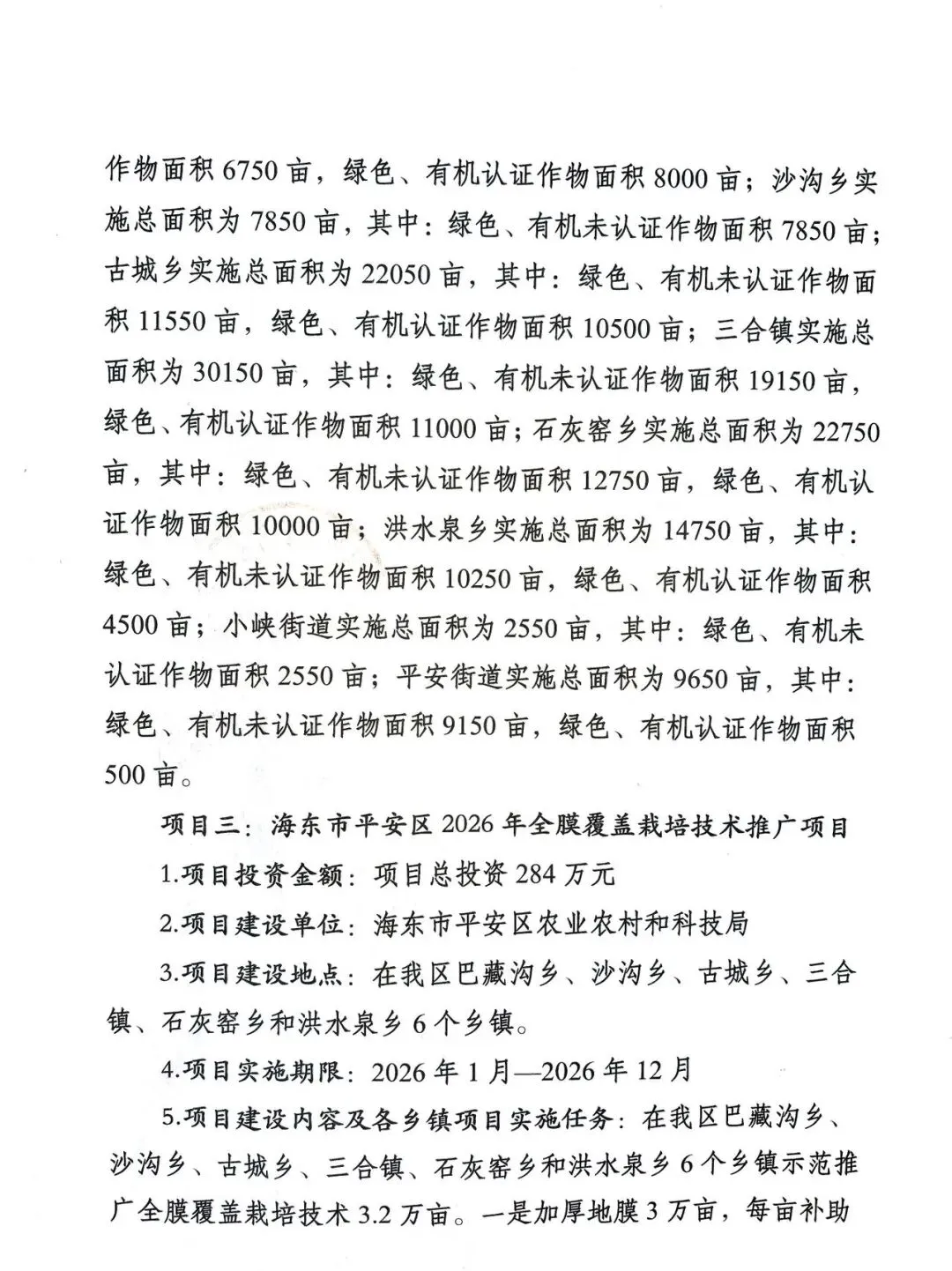 >海东市平安区农业技术推广中心2026年第一批实施项目公示