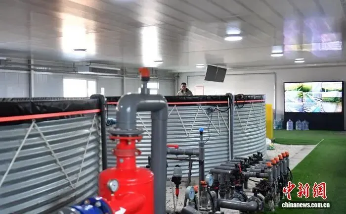 2月11日,雄安一农业园的智能玻璃温室内,工作人员正在水培控制室巡检。