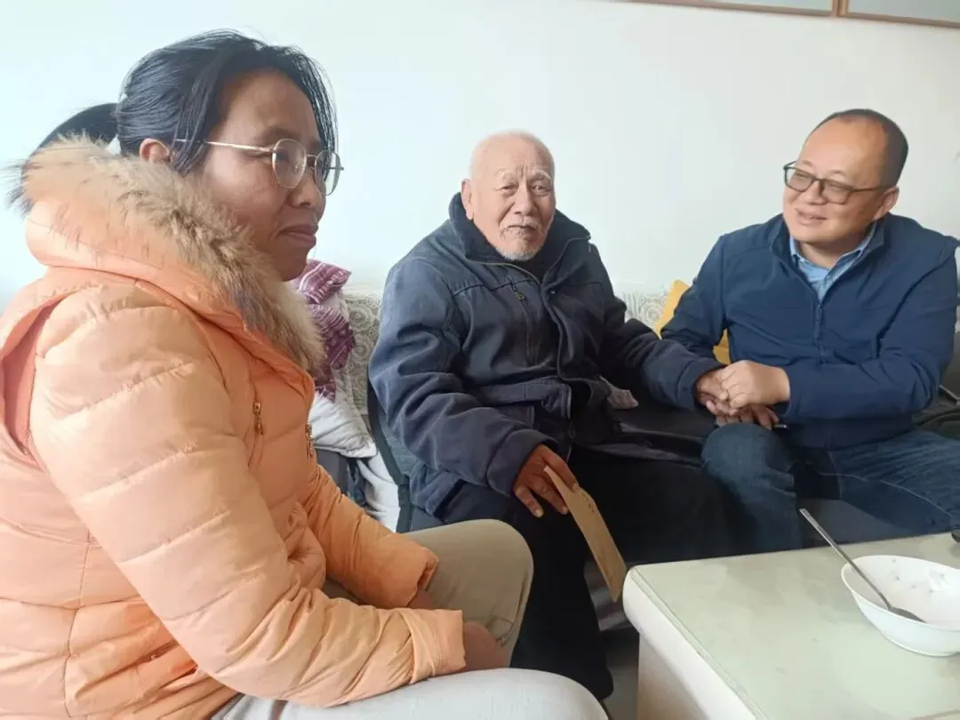 慰问组一行来到离休干部李增培家中,李老虽100岁高龄,仍精神矍铄、思维灵活,局领导俯下身、紧握李老双手、亲切与他促膝长谈,耐心询问生活起居与身体状况,倾听他的心声和需求。叮嘱他保重身心健康,安享幸福晚年,明年再来看望他......