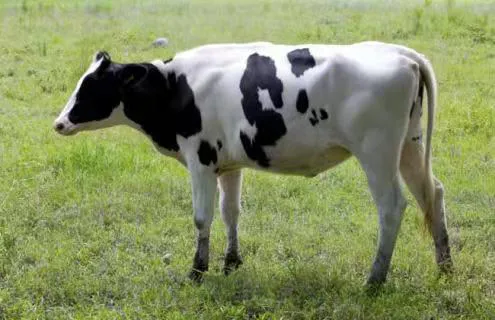 (3)荷斯坦牛:引进品种,原产于荷兰。体型清秀,骨突明显,角部清瘦,甲狭长,后躯宽长;全身成楔形,皮薄,皮下脂肪少,后躯较前躯发达;乳房大而丰满,紧凑不下垂,前伸后展明显。