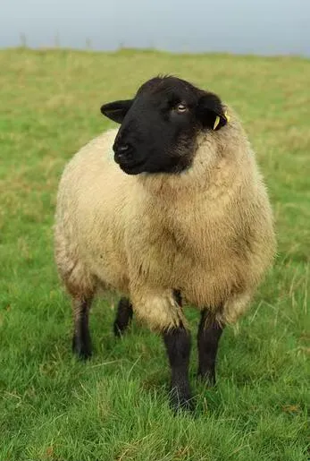 (2)萨福克绵羊:引进肉羊品种,原产于英国。体格大,体躯呈圆桶状,四肢较短,肌肉丰满,后躯发育良好;早熟,生长发育快,繁殖率高,产羔率130%~165%。适应性强,适宜作为肉羊生产的终端父本。