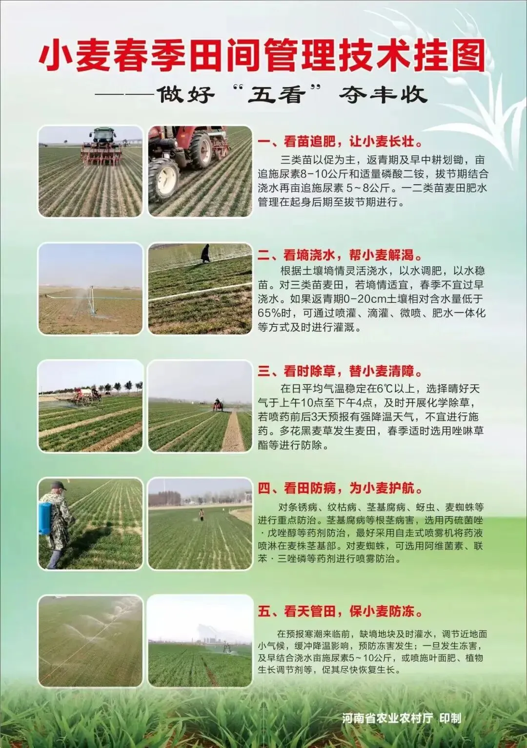 四要看田防防病,为小麦护航。