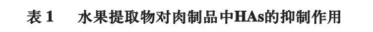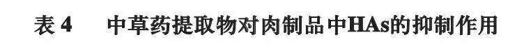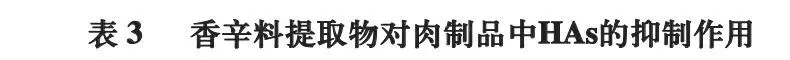 香辛料中的黑胡椒、花椒、迷迭香等能抑制HAs的生成,如表3所示。