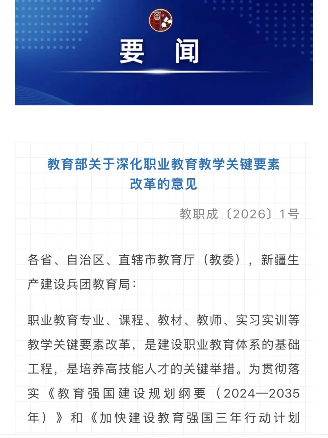 教育部教职成〔2026〕1号文件一声令下,职业教育改革进入深水区!