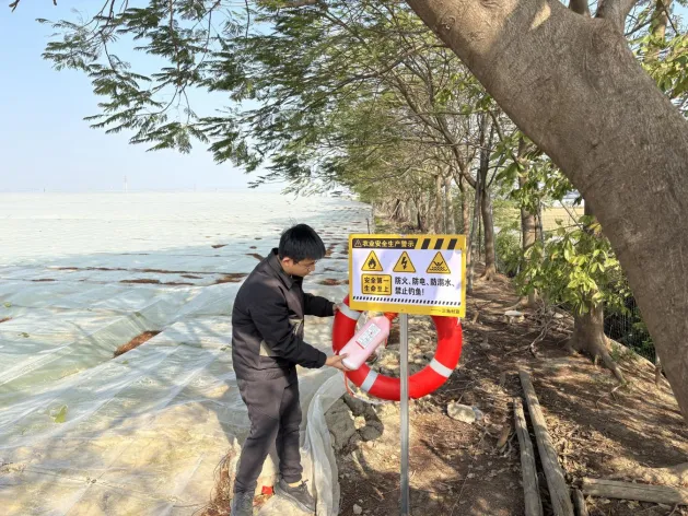 创新实施“四个一”安全措施。为贯彻落实安全发展理念,保障农户生命财产安全,增强安全生产意识,自2026年1月起,镇农业农村局联合各村创新实施养殖场防溺水“四个一”措施,即一个养殖场配备一个警示牌、一个救生圈、一条安全绳、一杆救生杆。镇、村两级将安全措施送到田间、鱼塘。截至目前,在辖区范围内鱼塘、河道等重点区域安置215个警示牌,标注“池深危险,请勿靠近”等提示语,以及配置69个应急救生圈、84条安全绳、100根安全杆,为突发溺水事件提供了快速有效的救援保障,最大限度降低溺水事故风险,织密农业生产安全网。此外,还累计派发张贴《安全生产告知书》约550份,组织800人次入户宣传安全生产操作规范。