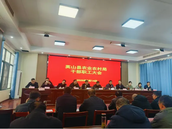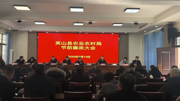 2026年2月14日,英山县农业农村局召开干部职工大会和节前廉政大会。县农业农村局全体党组班子成员、局机关全体干部职工、局属各单位主要负责人参加会议。