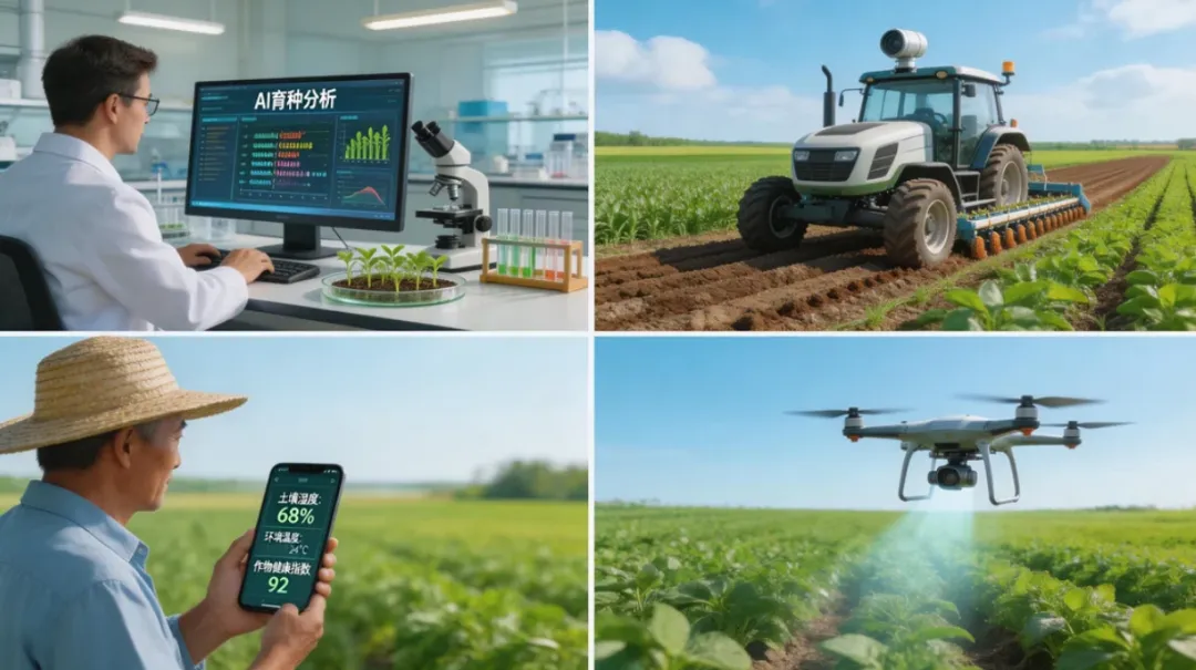 种子端:AI的介入让育种速度大大加快。过去十年才能选育一个品种,现在五年、三年。抗性更强、更适宜密植、更高产的品种,正在以更快的速度来到田间。