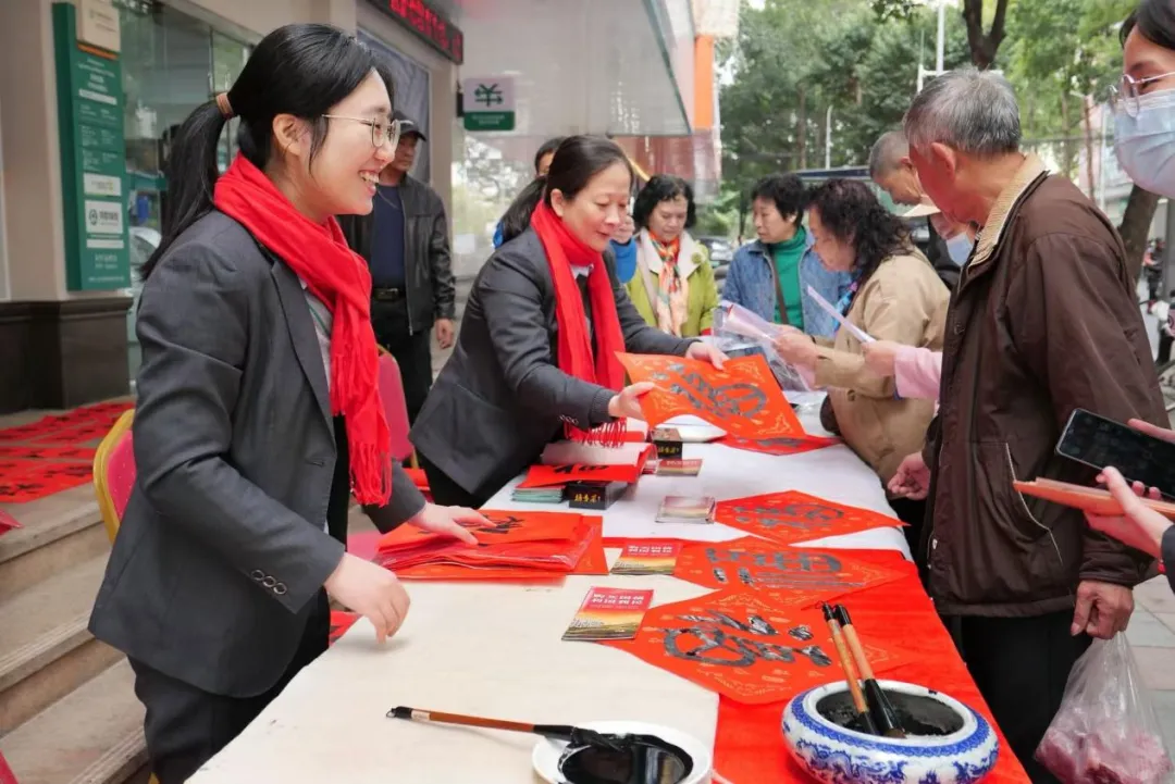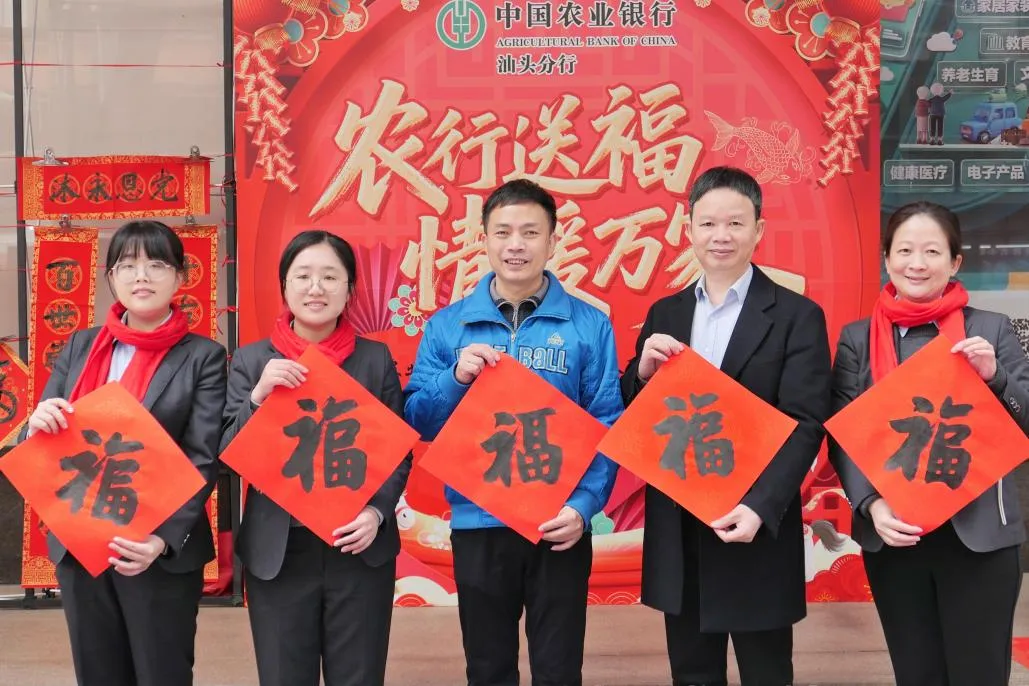 在新春佳节即将到来之际,为弘扬中华优秀传统文化,活跃员工文化生活,推进农业银行家园文化建设,营造文明祥和节日氛围,农业银行汕头分行于2026年2月10日在分行营业部营业室门前举办“农行送福 情暖万家”写春联送祝福活动。