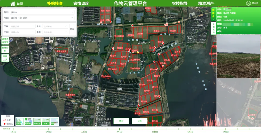 场景3:农户按户指导。多维度智能分析作物状况,评估作物产量及效益情况,给出农事操作建议。2025年稻麦季,在苏州市提供农技指导超14000户次,实现服务区域规模种植户全覆盖。