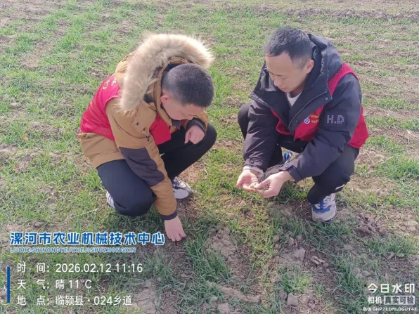 2月12日,漯河市农业机械技术中心积极发挥科技特派员技术优势,组织中心3名省科技特派员孙乐明、杨鹏辉、郗昊,赴召陵区临颍县农机专业合作社,开展春季农业生产技术指导服务,推动春耕备耕工作扎实开局。精准服务农机应用,助力春耕高效作业。在金土地农机专业合作社,科技特派员围绕春季春耕农机具保养与维修要点开展现场指导,针对发动机、传动系统、液压装置等关键部件进行拆解演示,详细讲解日常维护规范及常见故障排除方法。同时,向合作社理事长及农机手宣传推广农机信息化应用技术,介绍智能监测、作业调度等数字化管理手段。特派员一行还实地查看了高性能智能烘干设备及仓储基地建设情况。深入田间会诊苗情,科学施策促弱转壮。随后,科技特派员来到农家丰农机专业合作社,实地踏查小麦返青期苗情、土壤墒情及病虫害发生动态。针对部分地块群体偏弱、底墒不足等问题,现场指导合作社技术人员因苗分类管理:一是对弱苗地块趁墒追施返青肥,亩施尿素6-8公斤;二是对表墒较差地块适时喷灌补墒,兼顾降温抗冻;三是加强纹枯病、蚜虫及红蜘蛛监测,推行“发现一点、控制一片”的精准防控策略。