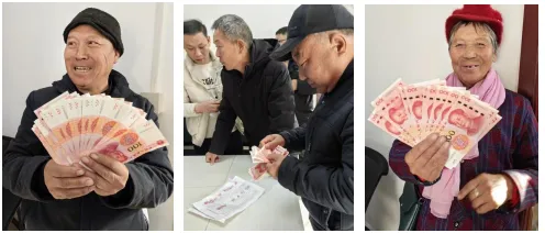 2月13日,阜平县吴王口乡三岔村举办2025年度产业分红暨见义勇为表彰仪式,村委会院子里,一摞摞现金整齐码放在长条桌上,村民们三五成群,笑逐颜开,眼里的笑意、心中的喜悦怎么也藏不住。