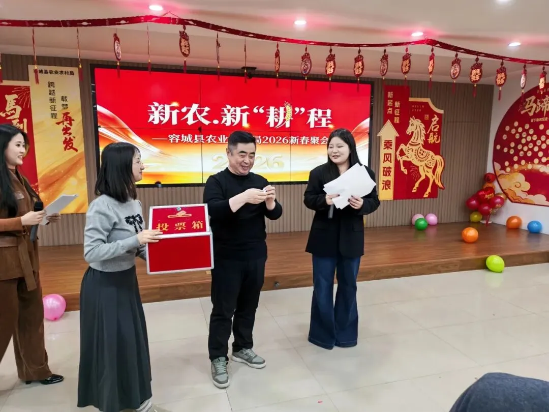 旧岁已展千重锦,新年再进百尺竿。2026年是“十五五”蓄势开局的关键之年,更是容城农业农村现代化提速冲刺之年。这场聚会,是回望,是致敬,更是集结。全局干部职工将以更加昂扬的姿态、更加务实的作风,在“新农·新‘耕’程”上挥毫落笔:守好粮食安全“压舱石”,绘就和美乡村“新画卷”,跑出产业振兴“加速度”。