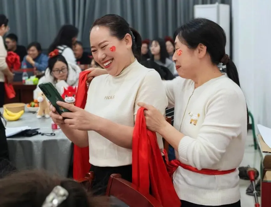 趣味游戏环环相扣。“一锤定音”蒙眼敲锣,参赛者原地转圈后摸索前行,围观者笑声和指引声交织,奋力一击的瞬间,蒙眼者如释重负。“齐头并进”两人三足,各组队员绑腿协作,运送玩具,有人配合默契健步如飞,有人步调不一笑作一团。“三农”知识问答、红歌接龙穿插进行,现场气氛一浪高过一浪。