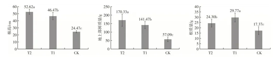在玉米拔节期采集样品,测量玉米株高、茎粗、总根长、地上部鲜质量。