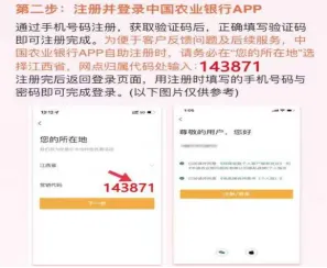 2、为便于客户反馈问题及后续服务,中国农业银行APP自助注册时,请在所在地选择江西,输入代码143871。