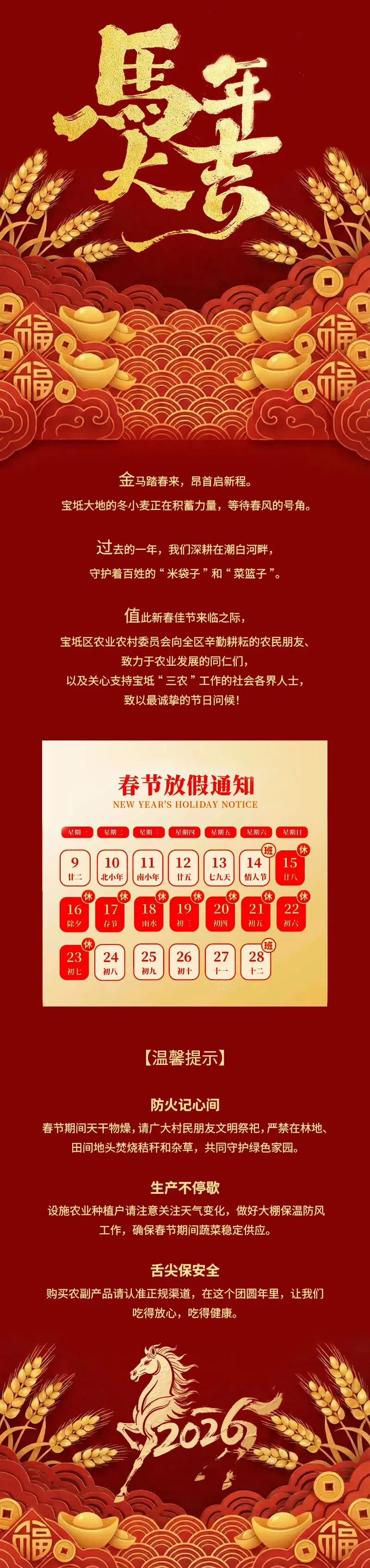 >骏马奔腾迎新岁,五谷丰登又一年!宝坻农业农村委祝您马年大吉!