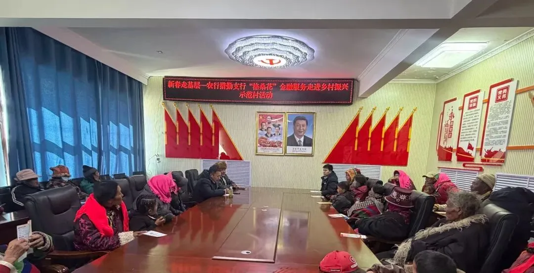 在各示范村,“格桑花”金融服务队主动摸排春耕备耕、乡村产业发展融资需求,建立需求清单,开展系列金融服务活动,有效满足村民日常金融需求。农行措勤县支行与达瓦村“两委”开展主题党日活动与政策宣讲;农行噶尔县支行赴典角村开展金融戍边服务;农行札达县支行在底雅村与驻村工作队、村“两委”开展座谈交流,对接边境群众发展与产业资金需求;农行日土县支行在甲岗村“金穗惠农通服务点”进行全面巡检;农行改则县支行、普兰县支行、革吉县支行同步在各自示范村围绕惠农信贷、反诈防诈等与村民息息相关的内容开展宣讲。2月的阿里高原寒风凛冽、风雪相伴,农行阿里分行“格桑花”金融服务队将金融政策、信贷资金和暖心服务送到群众家门口。