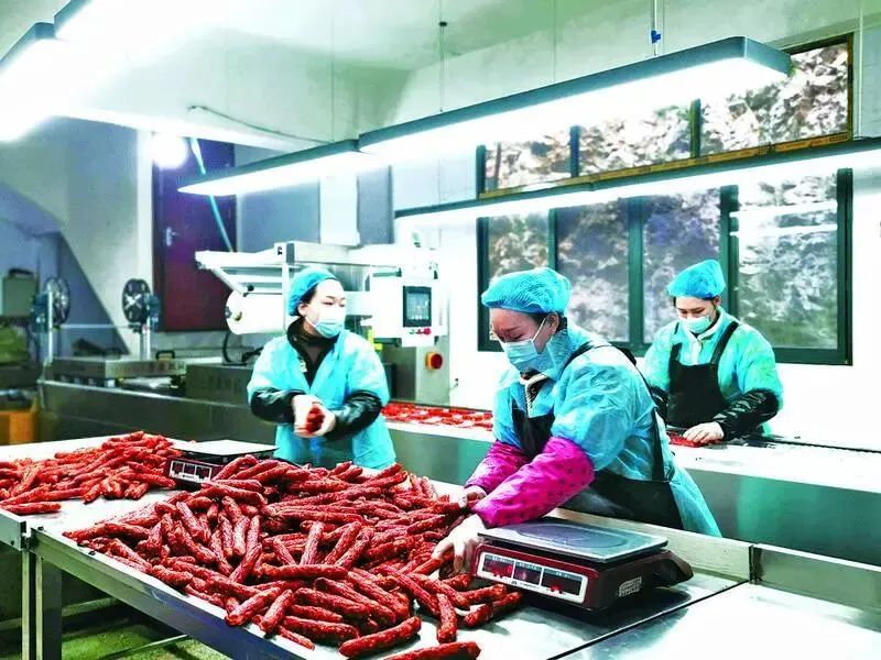 全区年加工“开州香肠”达2.8万吨、全市第1,2023年被中国肉类协会授予“中国香肠之乡”称号。一是养好“一圈猪”,紧扣“从嘴巴到尾巴”全环节,推行规模化、标准化、绿色化、数字化养殖,建成出栏500头以上规模养殖场699家,挂牌国家级生猪产能调控场6家、市级生猪产能调控场32家,生猪年出栏量达到110万头,规模养殖场粪污处理设施实现全覆盖。二是灌好“一根肠”,挂牌成立“市畜牧科学院开州分院”“国家生猪技术创新中心开州示范站”,补齐“开州香肠”加工、技术、研发等短板,培育香肠腊肉加工企业12家,香肠加工作坊和门店超300家,发布开州香肠团体标准2项。三是做好“一块牌”,创新举办“开州香肠美食文化节”8届,注册“举子香肠”“锦开香肠”等企业商标25个,获批“巴味渝珍”授权产品5个、重庆名牌农产品2个。开州香肠在市产业生态大会上完成“爆品”发布,成功入选“渝味360碗”、荣膺“最具文化价值菜品”称号、入选首批巴渝“土特产”名优百品、进入全国名特优新农产品目录。