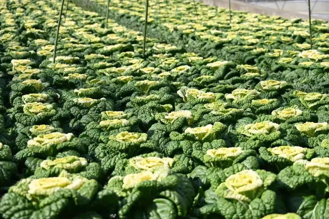 此次活动的主角——黄玫瑰白菜,是南京农业大学侯喜林教授研究团队的培育创新成果,该品种兼具优良外观与突出农艺特性:营养含量方面,其钙含量达每100g220mg,类黄酮含量为普通白菜的10余倍,vc含量远超同类;抗病性方面,可有效抗霜霉病、黑斑病及病毒病;耐寒性表现优异,能耐受零下9.6℃的低温环境;产量方面,其净菜单株重0.6—0.7公斤,常规种植下亩产量可达4000公斤,丰产性良好。