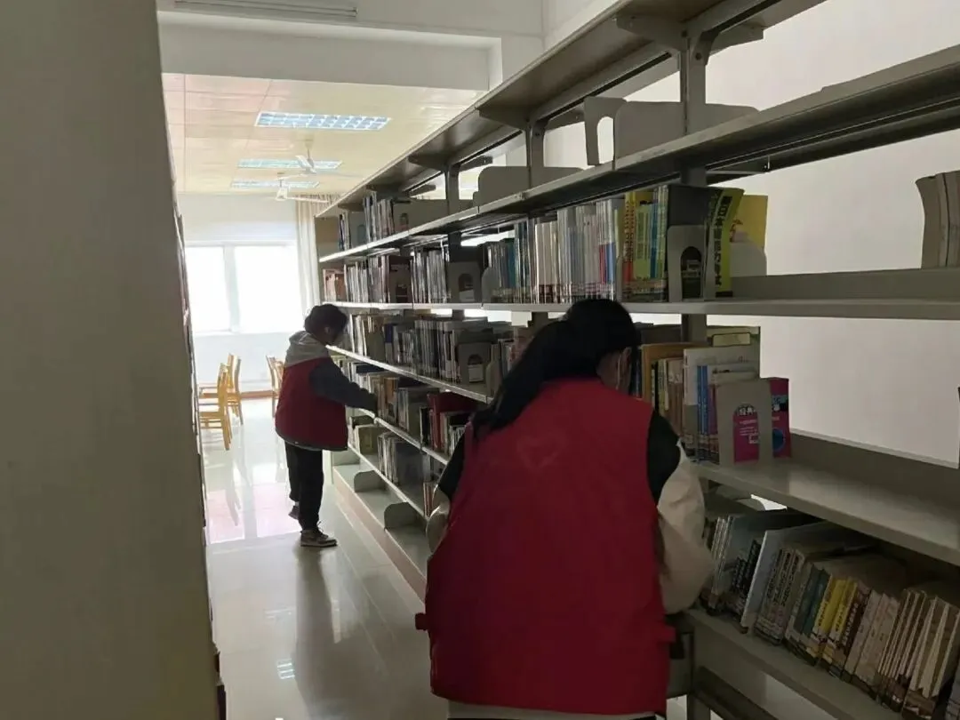 活动伊始,服务队成员在图书馆管理员的专业指导下,有序进入古籍与经典文献阅览区,协助开展书籍清点、分类排序与架位整理等工作。成员们轻取轻放、逐册核对,将《论语》《古文观止》等经典著作按索书号重新排列归位,并细心拂去书脊积尘、抚平卷角页眉,对部分书籍进行简易维护。指尖抚过泛黄纸页,目光停留于斑驳墨迹,每一次归架都是一次与典籍的无声对话。