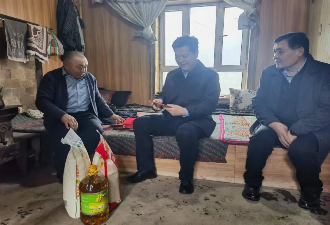 艾合买提·买买提一行先后走访慰问了吐尔斯别克·扎尔很木、赛依提别克·哈孜等退休党员及达吾来提·海利利、哈孜伊汗·依力亚斯等养殖户,详细了解退休党员生活现状及牧民养殖规模及效益,实地查看牲畜养殖情况,重点了解养殖户在品种改良和养殖技术方面的实际需求。