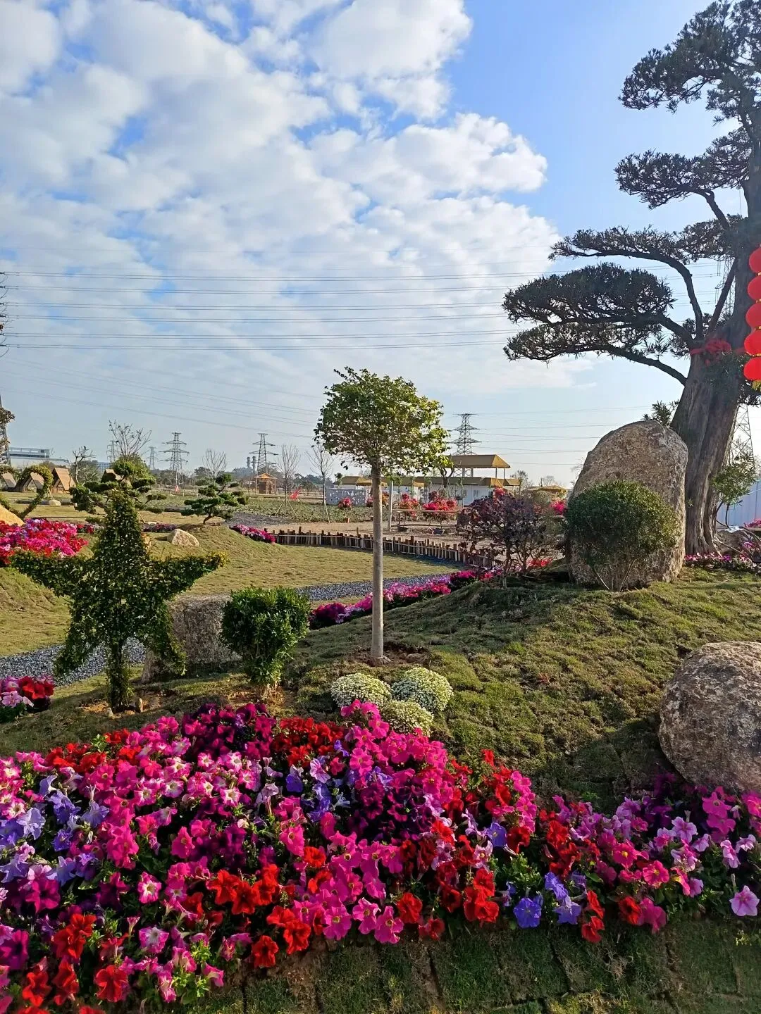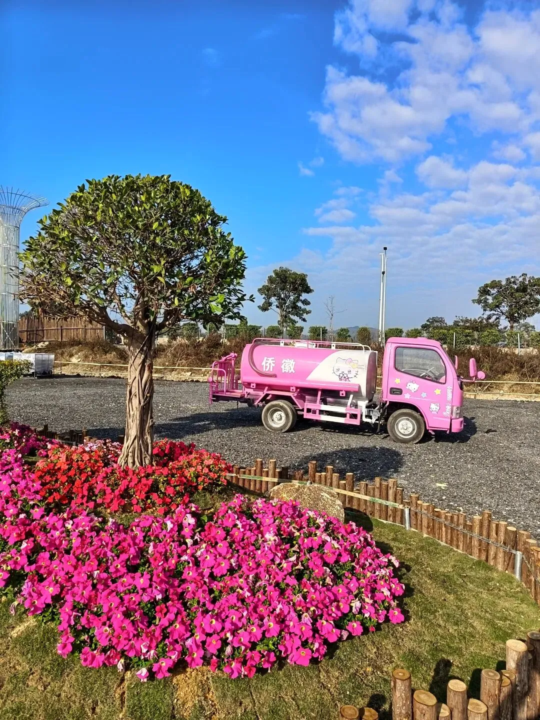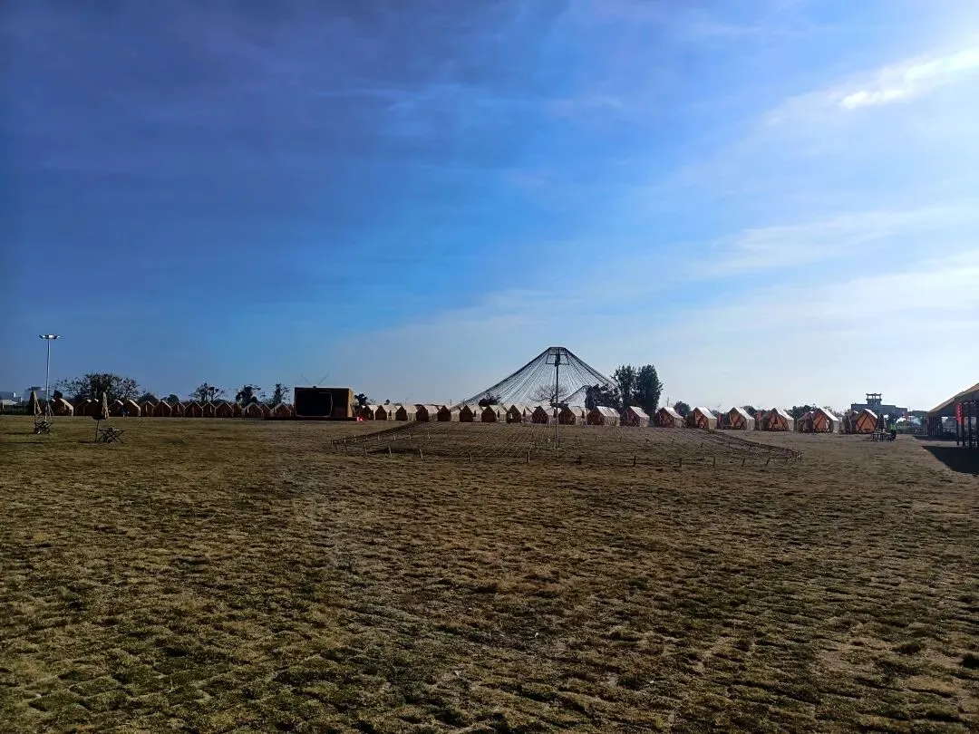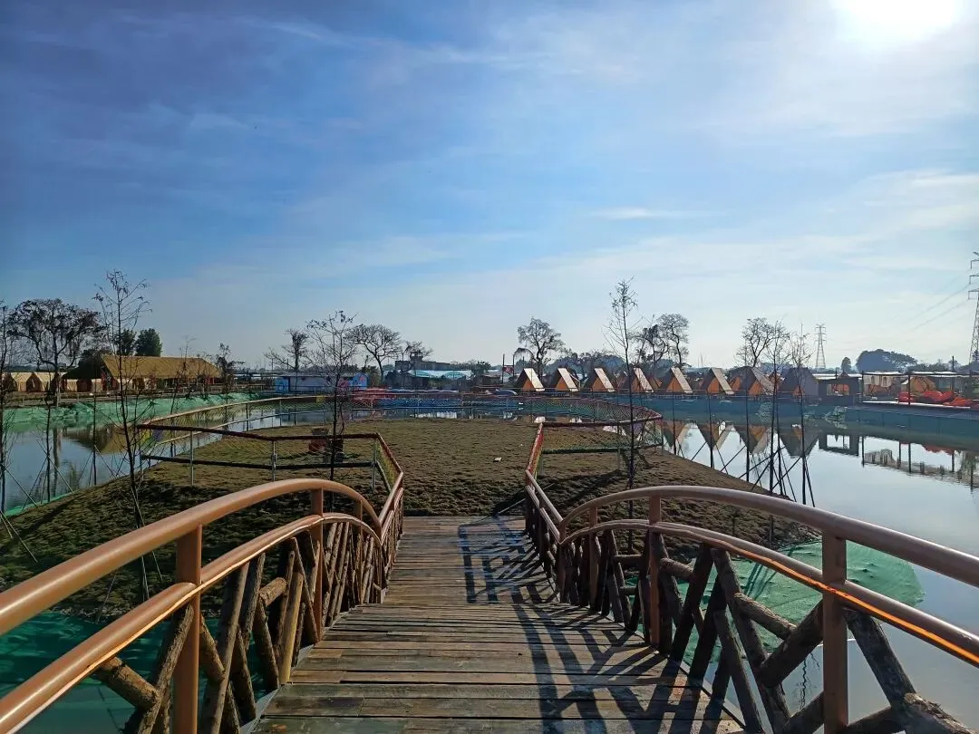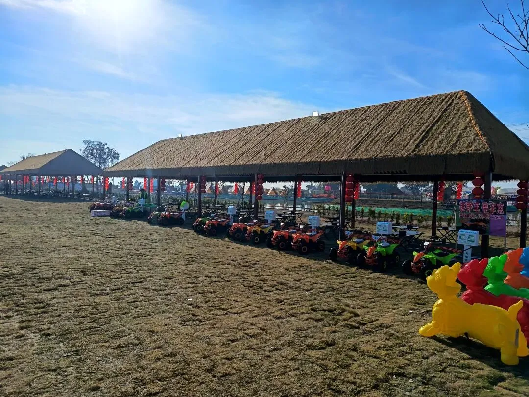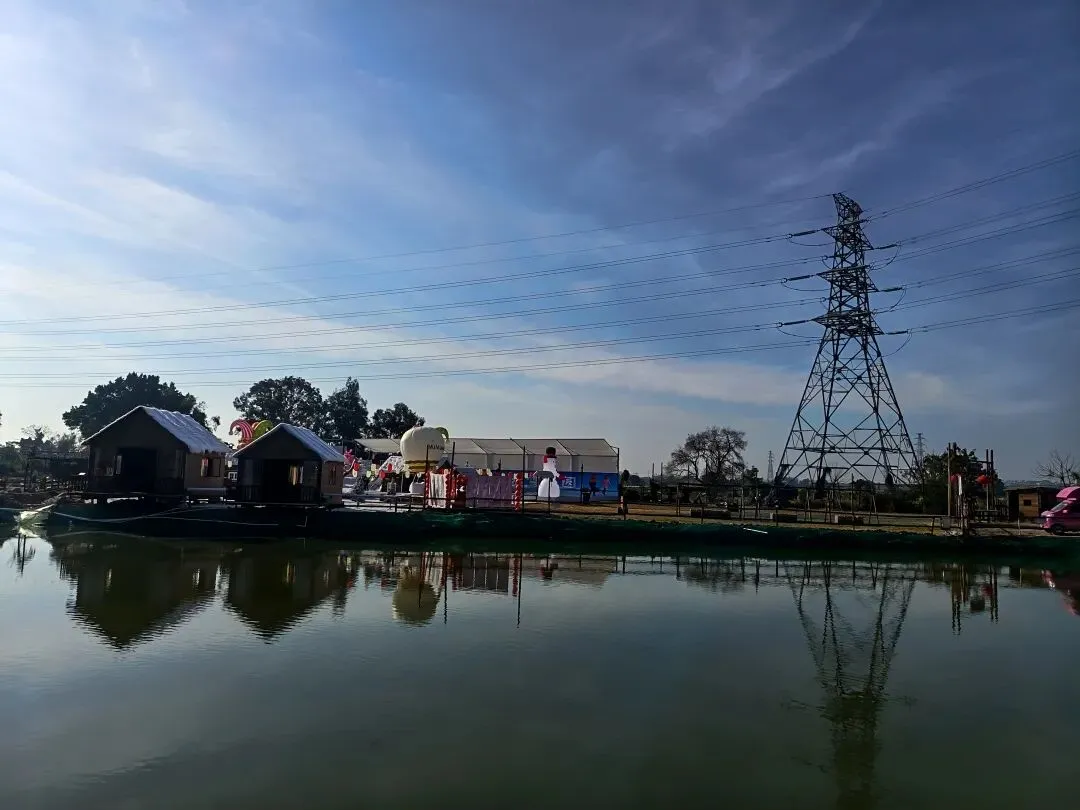 从这开始,基本都是收费项目了,动物园动物不多,鸽子鹦鹉马兔子羊驼等,估计小孩会喜欢吧,收费16.8,游乐园的人员说如果我进去就是第一个人了,没进去。露营区,本巷试开三轮摩托,工作人员还没准备好也不知道操作,只让我扫码,扫出个小程序啥的公司,就没进去下一步操作了,那就等下次再体验吧,园区准备太匆忙待完善。桥的那边是冰雪世界和矮人王国小房子和美食区,没过去,应该也都是收费项目,桥头站会就往回走了,沿途都没有凳子可以休息,也没地方避太阳,太晒了,才早上9点多。冰雪世界那边就没去了,往回走时,碰巧拉布布们和英歌舞潮州大锣鼓表演了,总算值回门票了哈。这里曾是田园牧歌的沃土,电塔阵静立绿洲,草长莺飞,承载着一代人的乡愁记忆。如今路过汕北大道侨徽生态园,见城市扩张、绿洲蜕变,不禁感慨:物换星移,每一代人都有各自的乡愁——我的乡愁在远去,新的乡愁又在孕育。或许多年后,这里也会成为下一代人追忆的"曾经乐园"。正如莱芜沙滩、黄河岸线相继围合,属于大自然的原生之美日渐稀缺,但故土正以另一种方式焕发活力,这便是时代进步的代价与馈赠吧。
