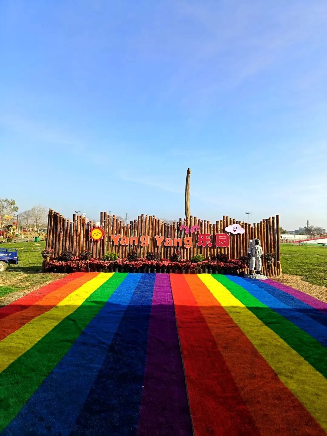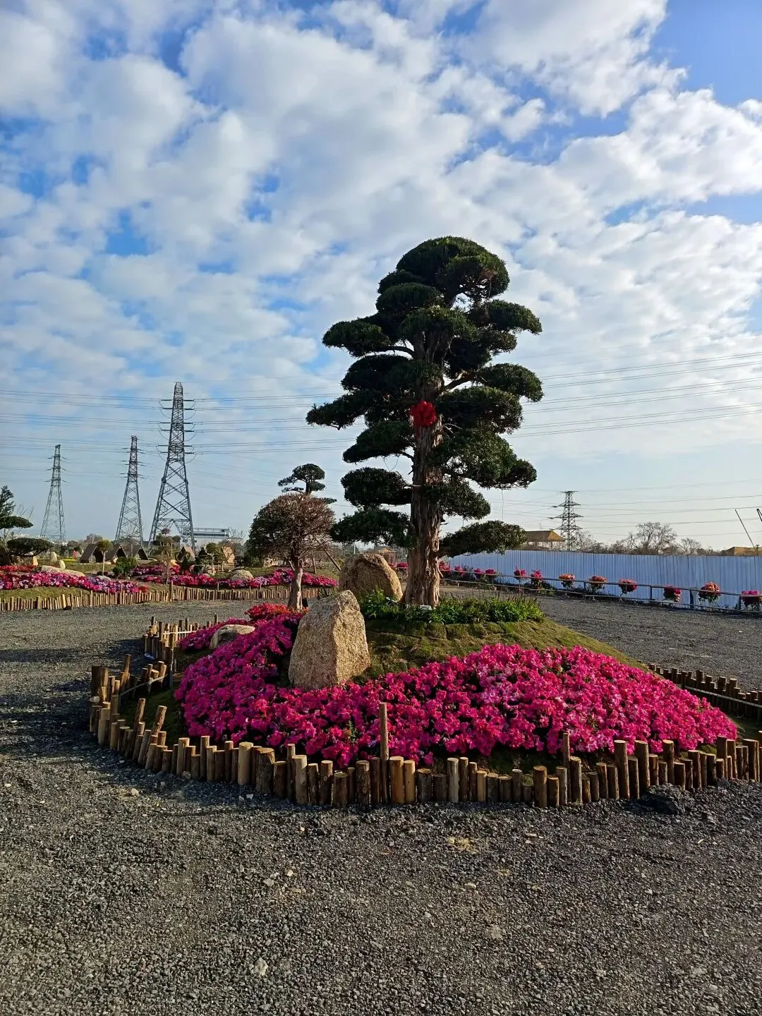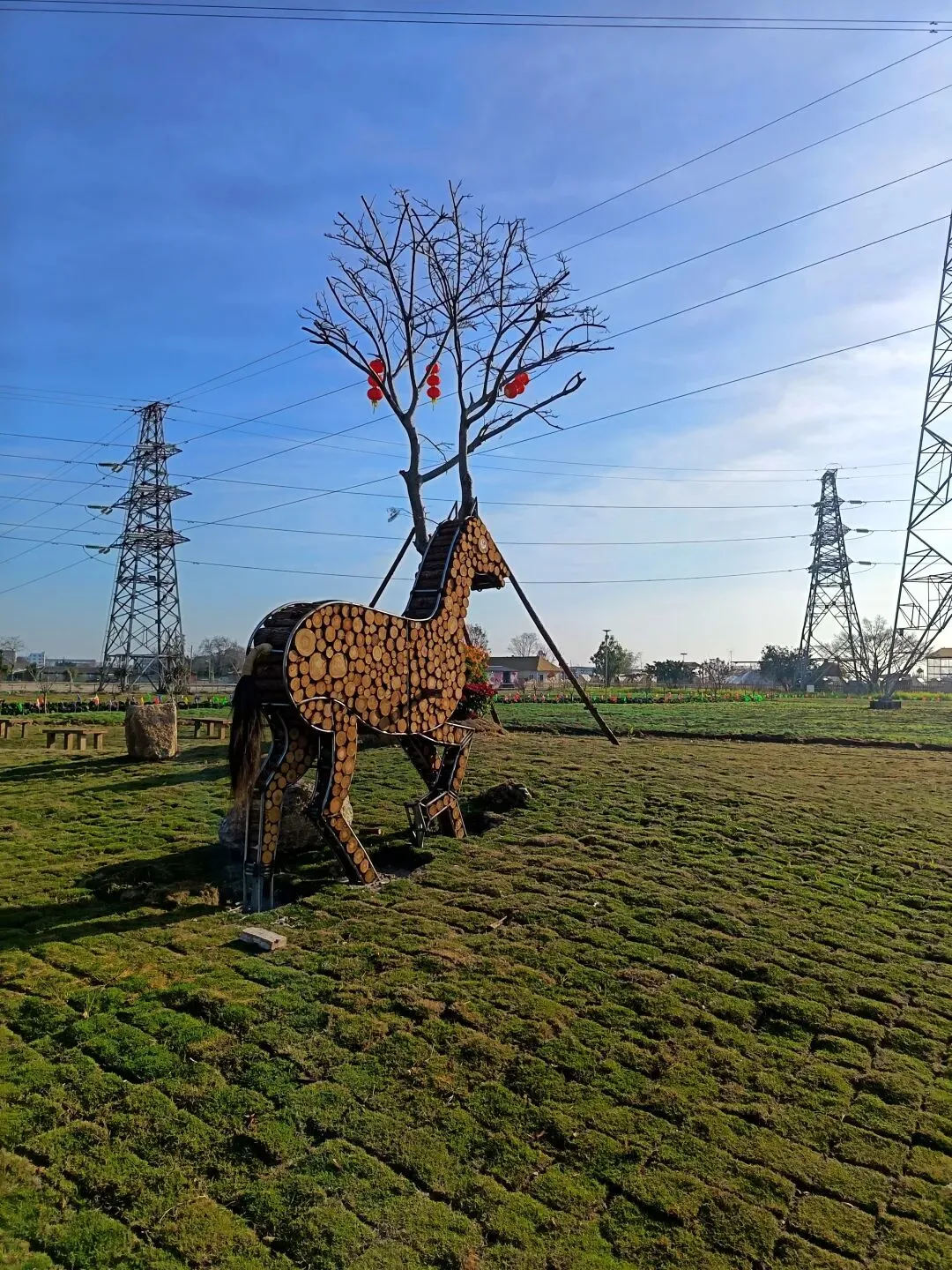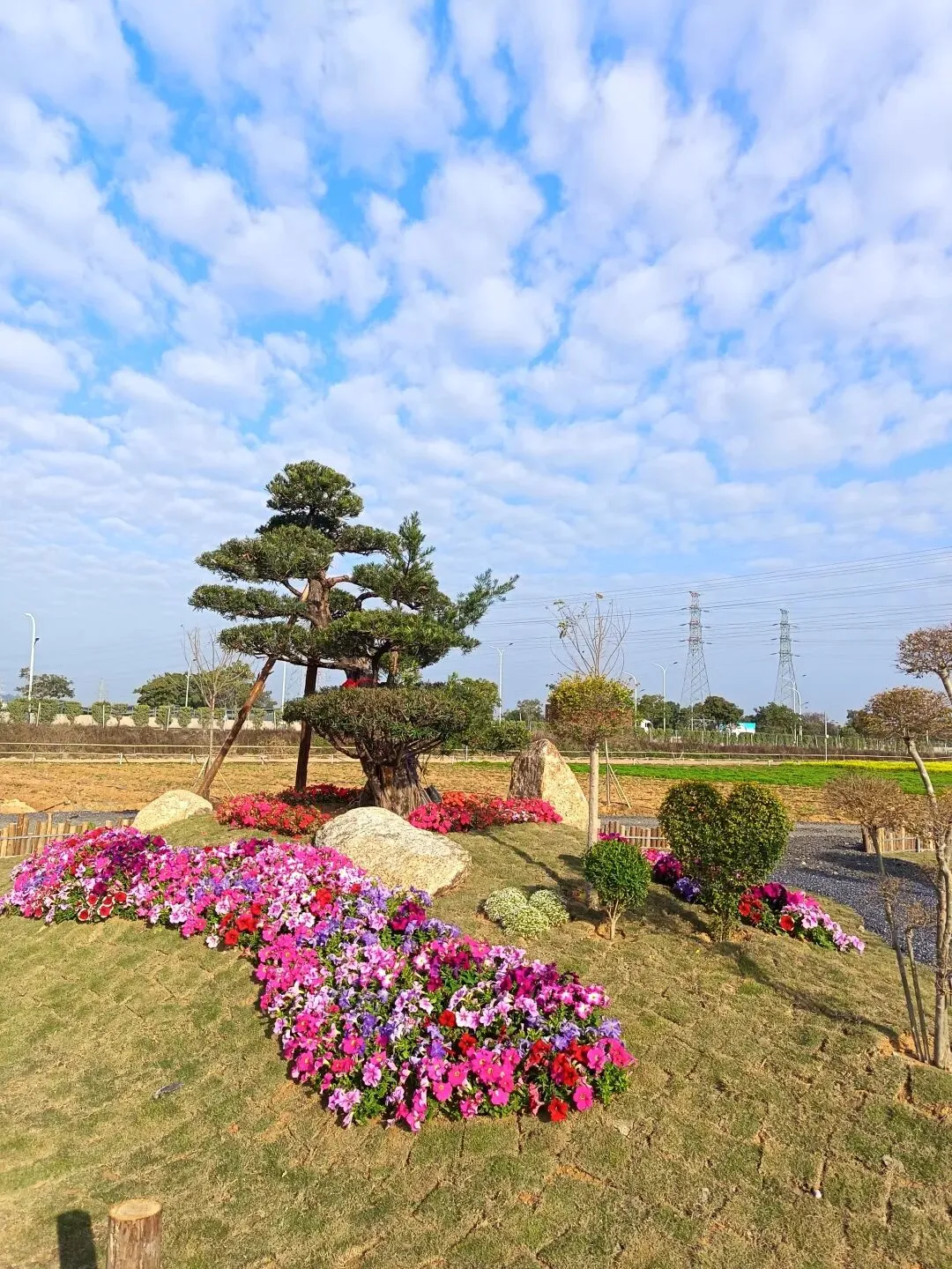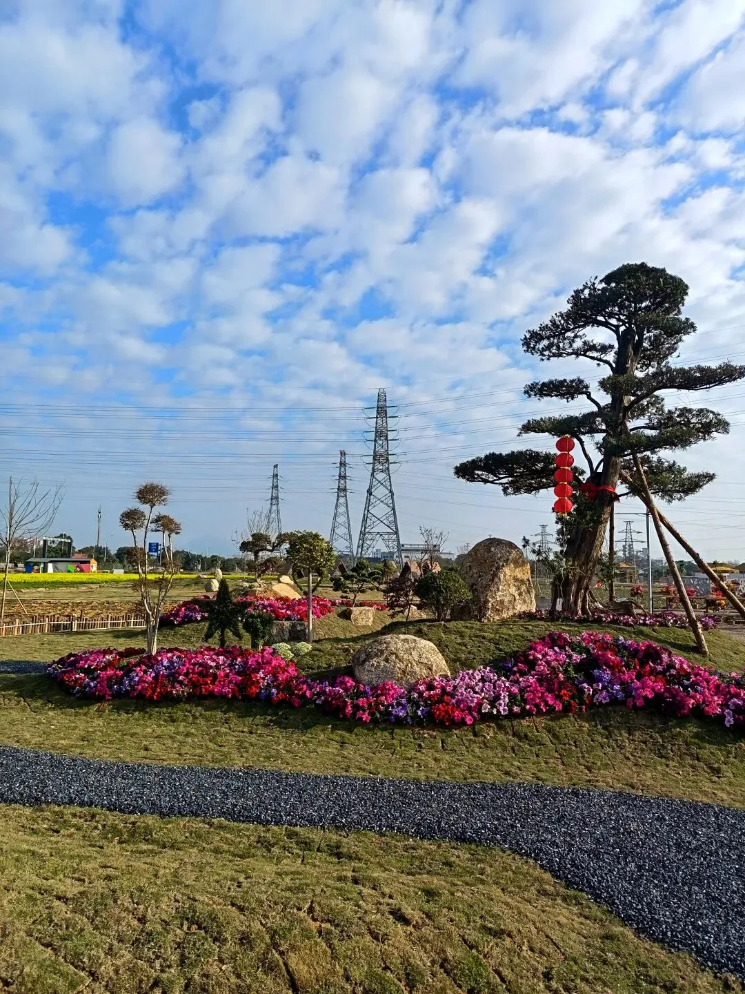 从这开始,基本都是收费项目了,动物园动物不多,鸽子鹦鹉马兔子羊驼等,估计小孩会喜欢吧,收费16.8,游乐园的人员说如果我进去就是第一个人了,没进去。露营区,本巷试开三轮摩托,工作人员还没准备好也不知道操作,只让我扫码,扫出个小程序啥的公司,就没进去下一步操作了,那就等下次再体验吧,园区准备太匆忙待完善。桥的那边是冰雪世界和矮人王国小房子和美食区,没过去,应该也都是收费项目,桥头站会就往回走了,沿途都没有凳子可以休息,也没地方避太阳,太晒了,才早上9点多。冰雪世界那边就没去了,往回走时,碰巧拉布布们和英歌舞潮州大锣鼓表演了,总算值回门票了哈。这里曾是田园牧歌的沃土,电塔阵静立绿洲,草长莺飞,承载着一代人的乡愁记忆。如今路过汕北大道侨徽生态园,见城市扩张、绿洲蜕变,不禁感慨:物换星移,每一代人都有各自的乡愁——我的乡愁在远去,新的乡愁又在孕育。或许多年后,这里也会成为下一代人追忆的"曾经乐园"。正如莱芜沙滩、黄河岸线相继围合,属于大自然的原生之美日渐稀缺,但故土正以另一种方式焕发活力,这便是时代进步的代价与馈赠吧。