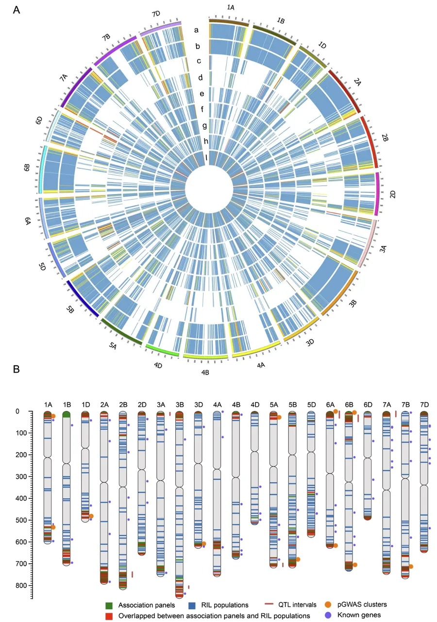 因此,该研究通过整合基因组重组景观、遗传定位、共线性分析和表达调控网络等构建了小麦抽穗期遗传网络的多维框架,为通过分子设计育种培育适应未来气候的高产、稳产小麦品种奠定了坚实的理论基础。河南农业大学陈锋教授和孙丛苇副教授为共同通讯作者,博士生郑跃婷和硕士生井震海为共同第一作者。该研究获得国家重点研发计划、河南省科技计划联合基金项目、国家自然科学基金、河南高校重点科研项目资助。